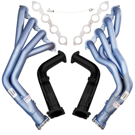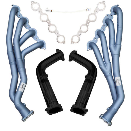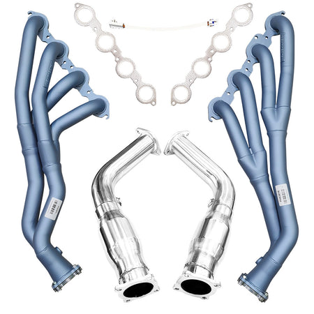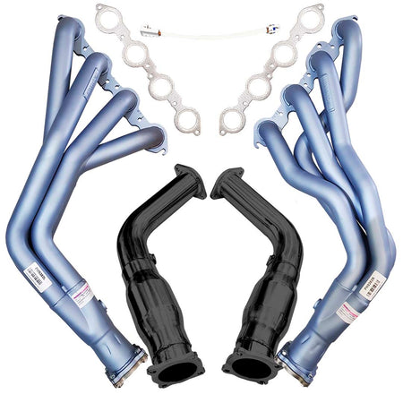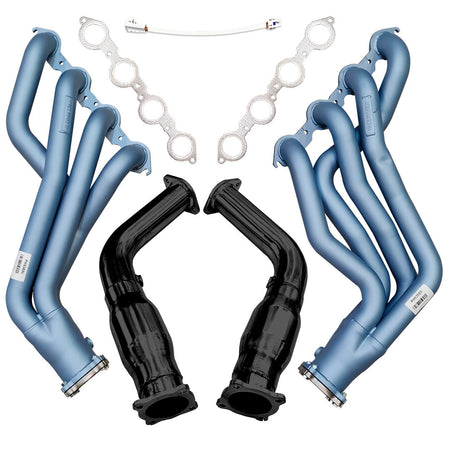 This combo kit includes everything you need for a complete installation, including a set of Bolt-On Cat Converters or Cat-Delete pipes for a direct fit to a 3" Pacemaker Exhaust System, LS manifold gaskets, and an oxygen sensor extension harness.